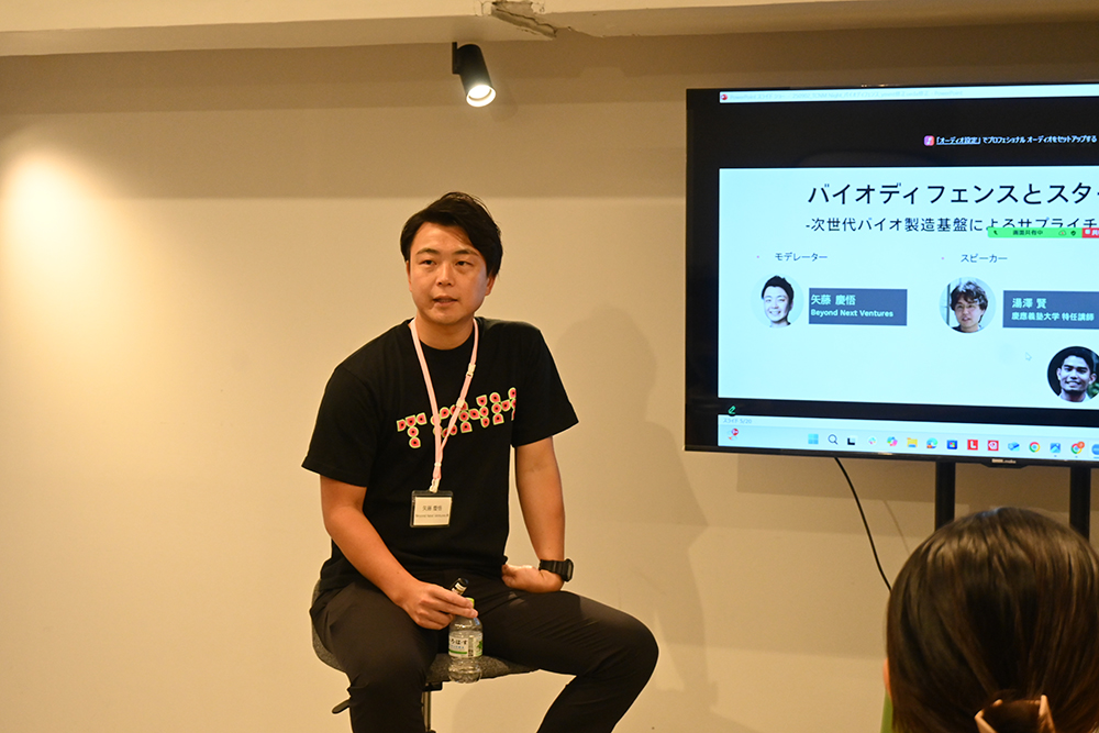 今回のモデレーターは有馬と共にTECHNIUM Global Conferenceを率いた矢藤慶悟が務めた。矢藤の主な投資領域は創薬とバイオ。Beyond Next Venturesに加わる前は国立感染症研究所で研究に従事していた。「国家の重要な研究機関でありながら、コロナ禍では海外のスピード感に圧倒的な遅れをとった。その現実に大きな違和感を覚えた」と自身の課題意識を共有した。